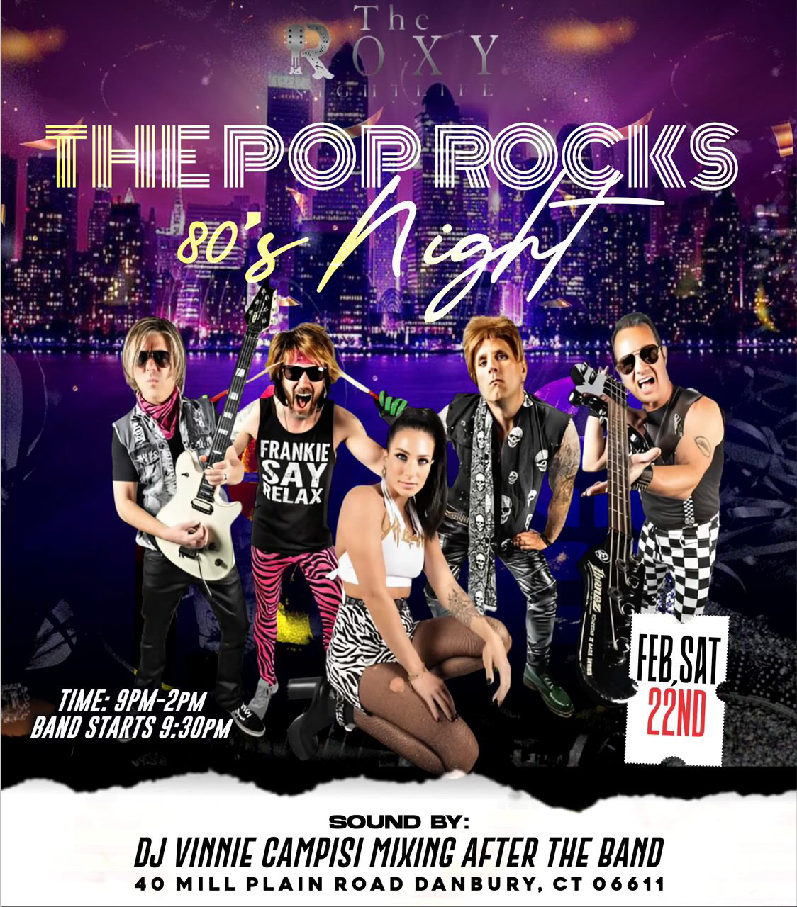 Think neon, big hair and Leg warmers! The Pop Rocks is back at The Roxy for a totally awesome 80’s night! Followed by DJ Vinnie Campisi mixing all your favorite dance music.