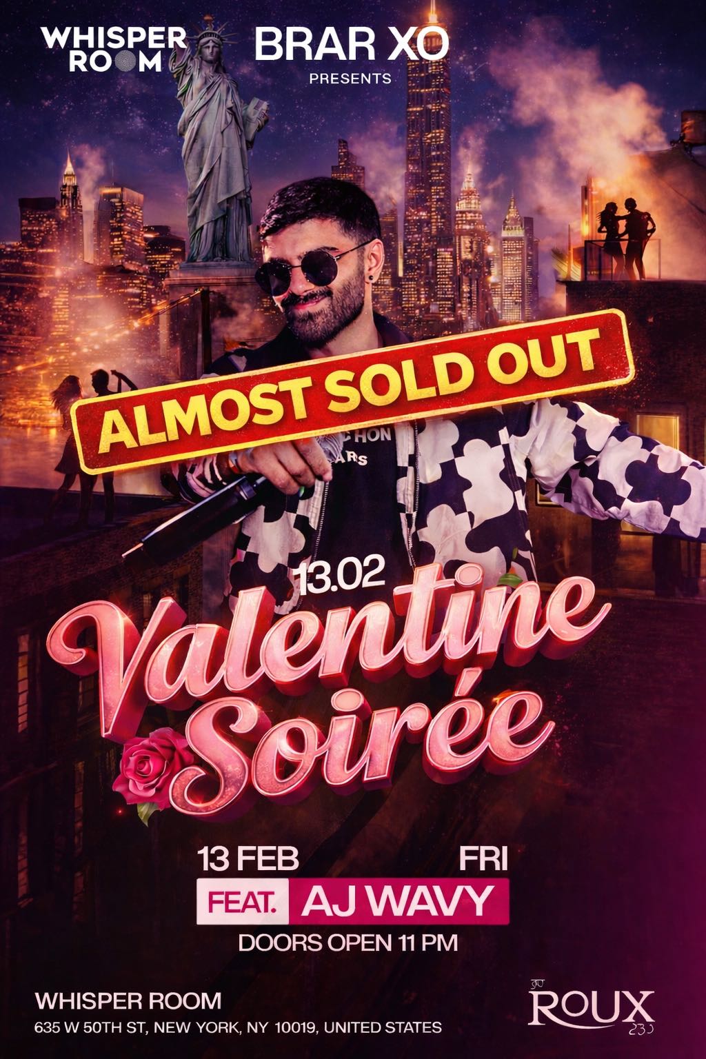 💘✨ AJ WAVY VALENTINE’S SOIRÉE — NYC ✨💘 This Valentine’s, step into a night made for romance, rhythm, and real vibes. Whether you’re coming with your person, your crew, or your main character energy, this is the party NYC is pulling up to. 🌹 BRAR XO PRESENTS: ROUX Valentine’s Soirée 📅 February 13, 2026 📍 Whisper Room, NYC 🎧 Featuring Intern...