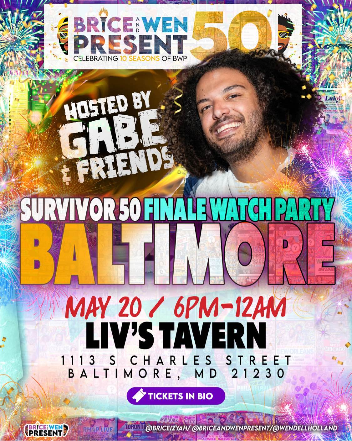 Baltimore’s own Survivor 47 Castaway Gabe Ortis is hosting an epic Survivor 50 Finale Watch Party at Liv’s Tavern in Baltimore! Come party with Gabe and more reality stars for the finale of the historic 50th season!
