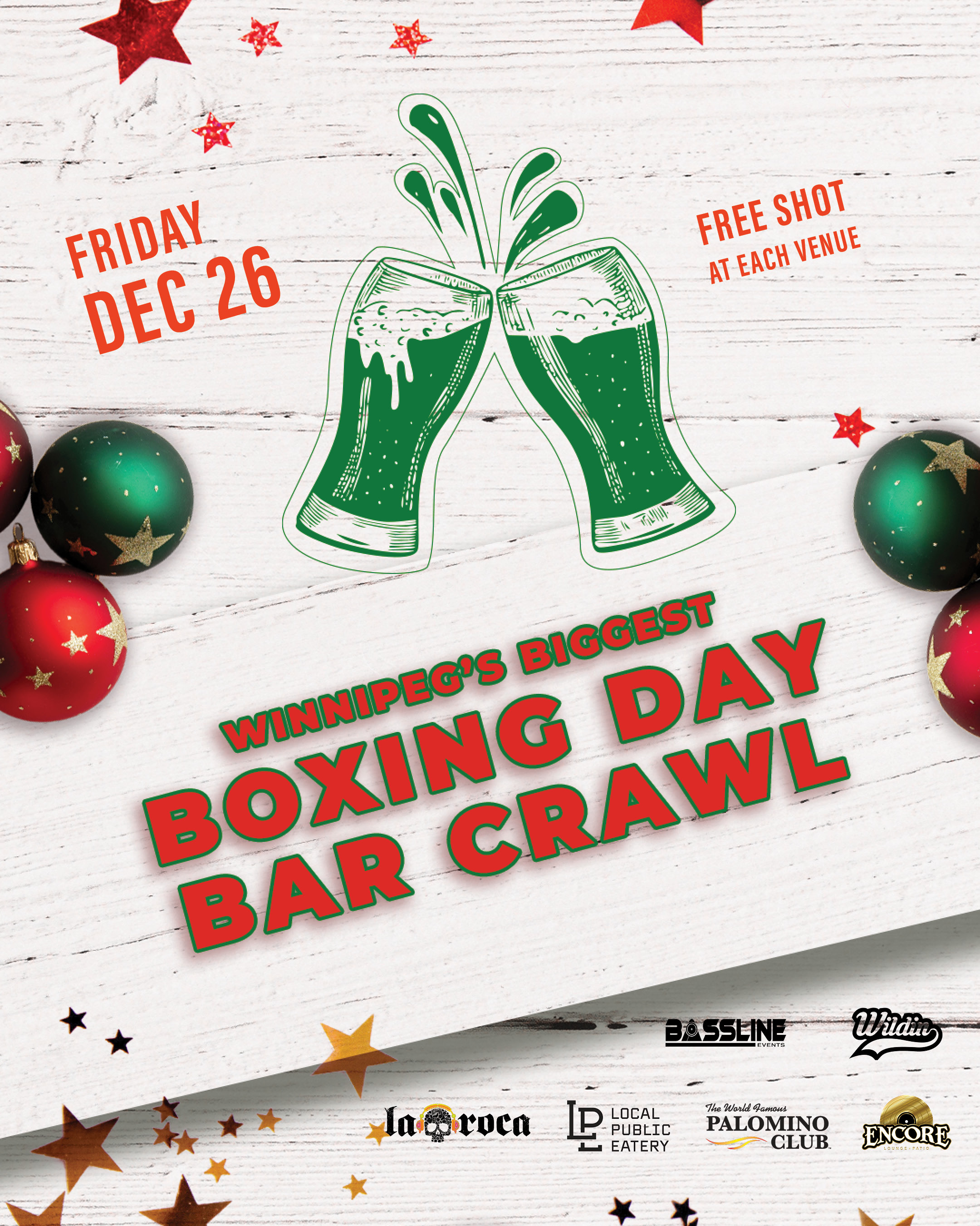 Grab you crew and get your tickets - this is THE Boxing Day event you don’t want to miss! We’re hitting La Roca, The Palomino Club, Local & Winnipeg’s newest venue Encore for a night you won’t forget!