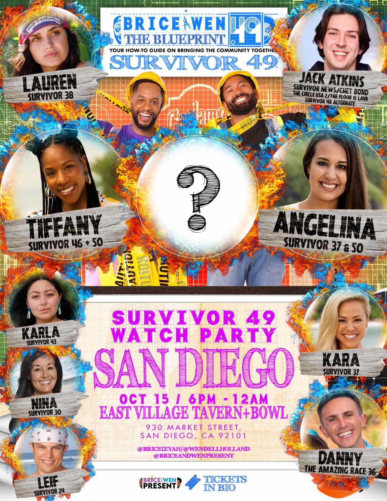930 Market St, San Diego, CA 92101, USABrice And Wen are headed to San Diego for another EPIC Survivor 49 Watch Party! Doors open at 6, Survivor starts at 8, and we will party until midnight! This event is FAMILY FRIENDLY, yes, we welcome ALL AGES!!