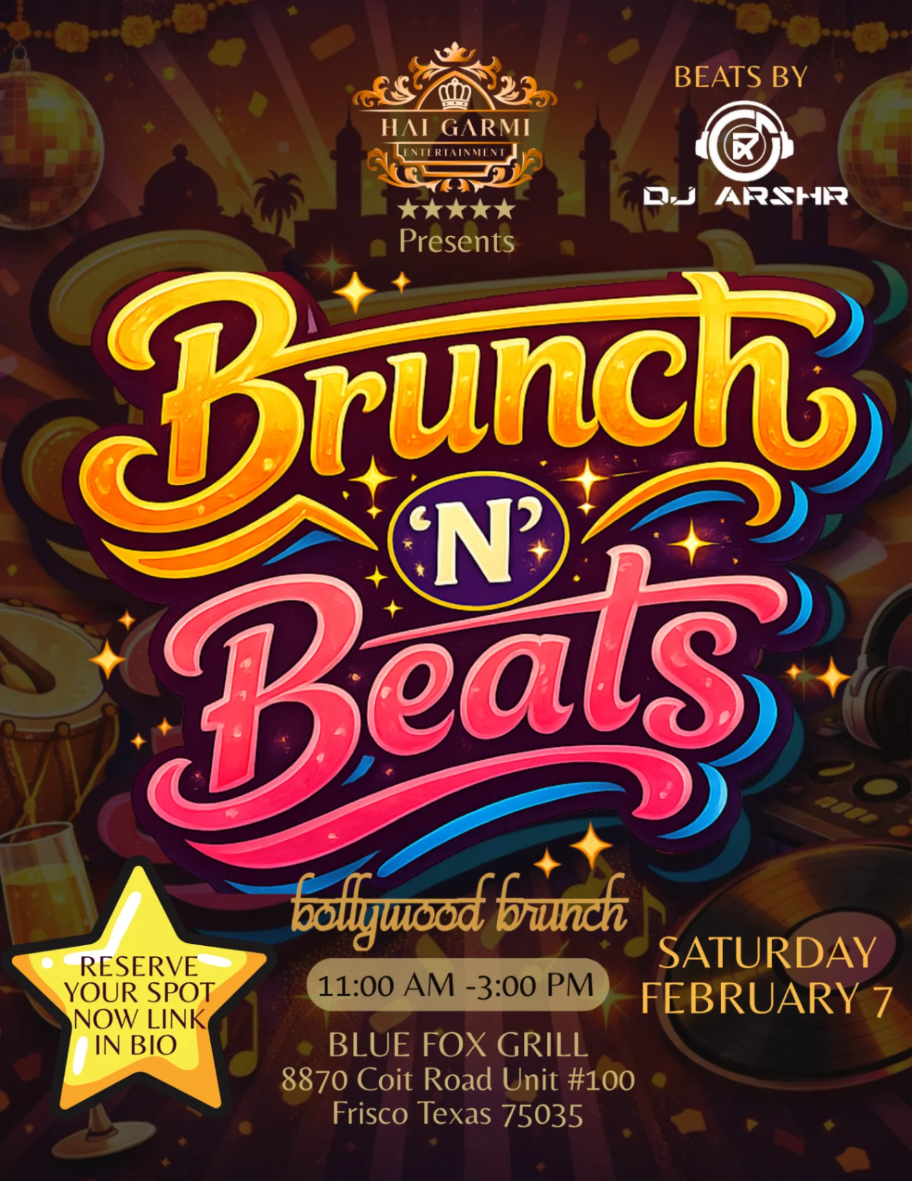 🥂🎶 We’re BACK with our next event — Brunch N Beats: Bollywood Edition!