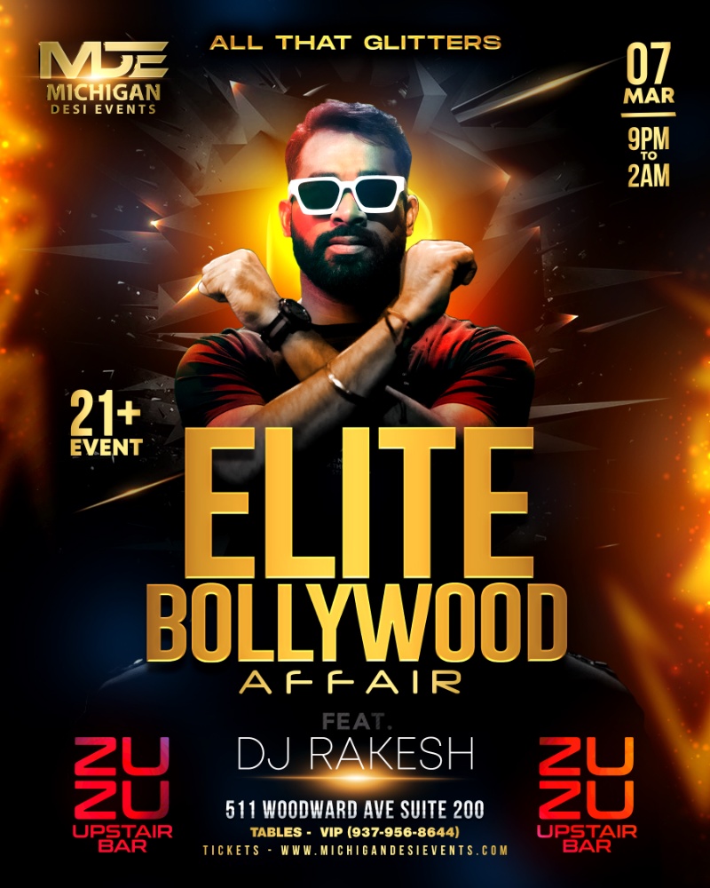 MDE proudly presents Elite Bollywood Affair on march 7th at Club ZUZU Upstairs ft DJ RAKESH - Where glamour meets the best of bollywood beats.