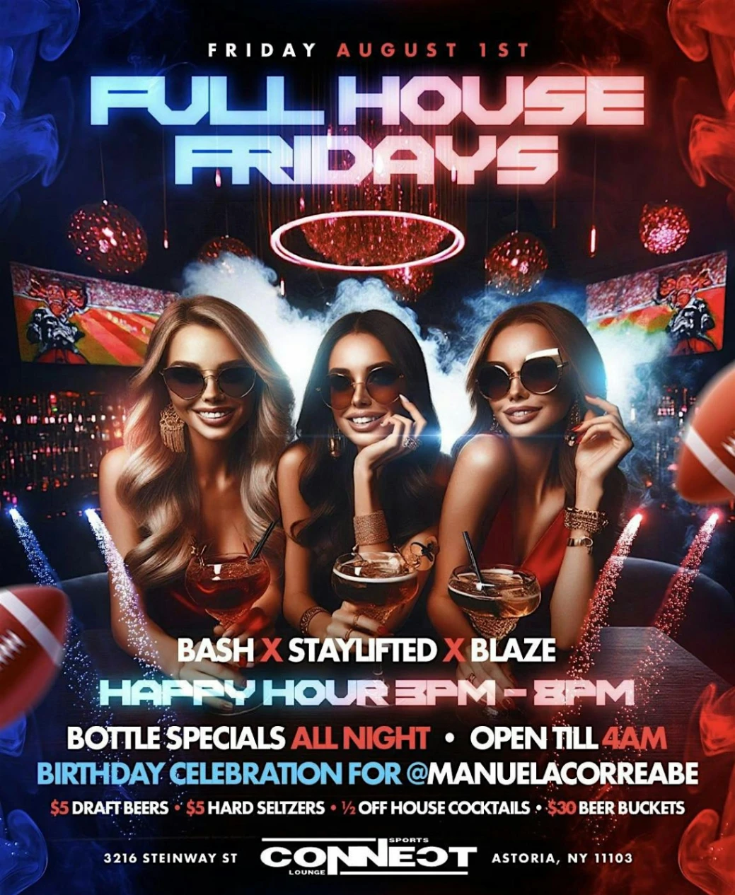 The weekend starts where the energy never stops — Full House Fridays at Connect Lounge in Astoria! On Friday, August 1st, gather your crew and head to one of the hottest nightlife destinations in Queens for a night of unbeatable drink specials, birthday vibes, a...