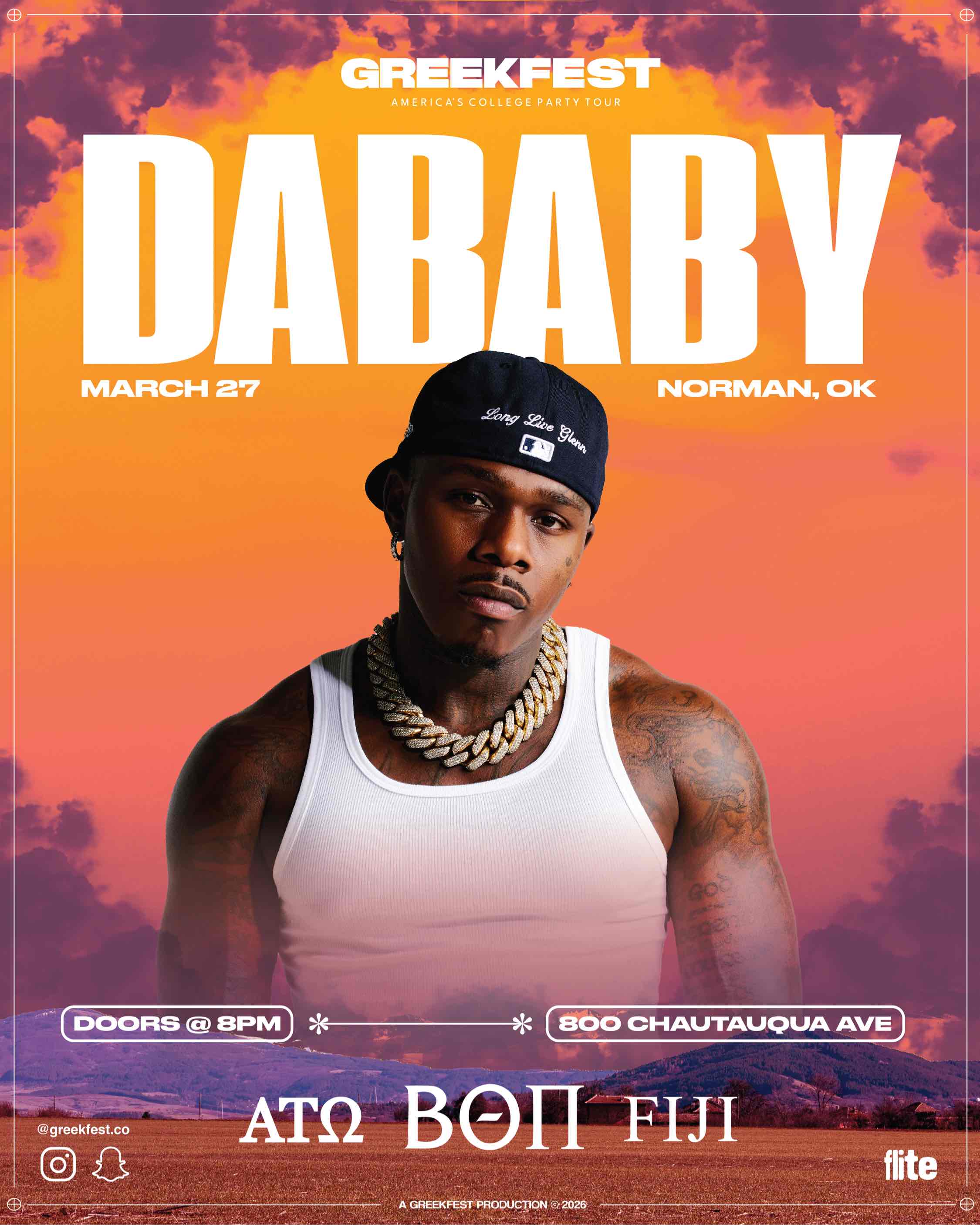 GreekFest makes it's Norman debut with DaBaby! Buy your ticket before the show is SOLD OUT!