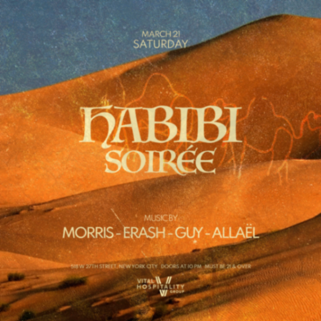 Last and final party for the season! Habibi soirée at Chelsea’s most iconic venue Music for a while! Limited tickets are available. This event is a strictly 21+ event with valid physical id. All sales are final and non refundable under any conditions. For vip table reservations please text 3473587443
