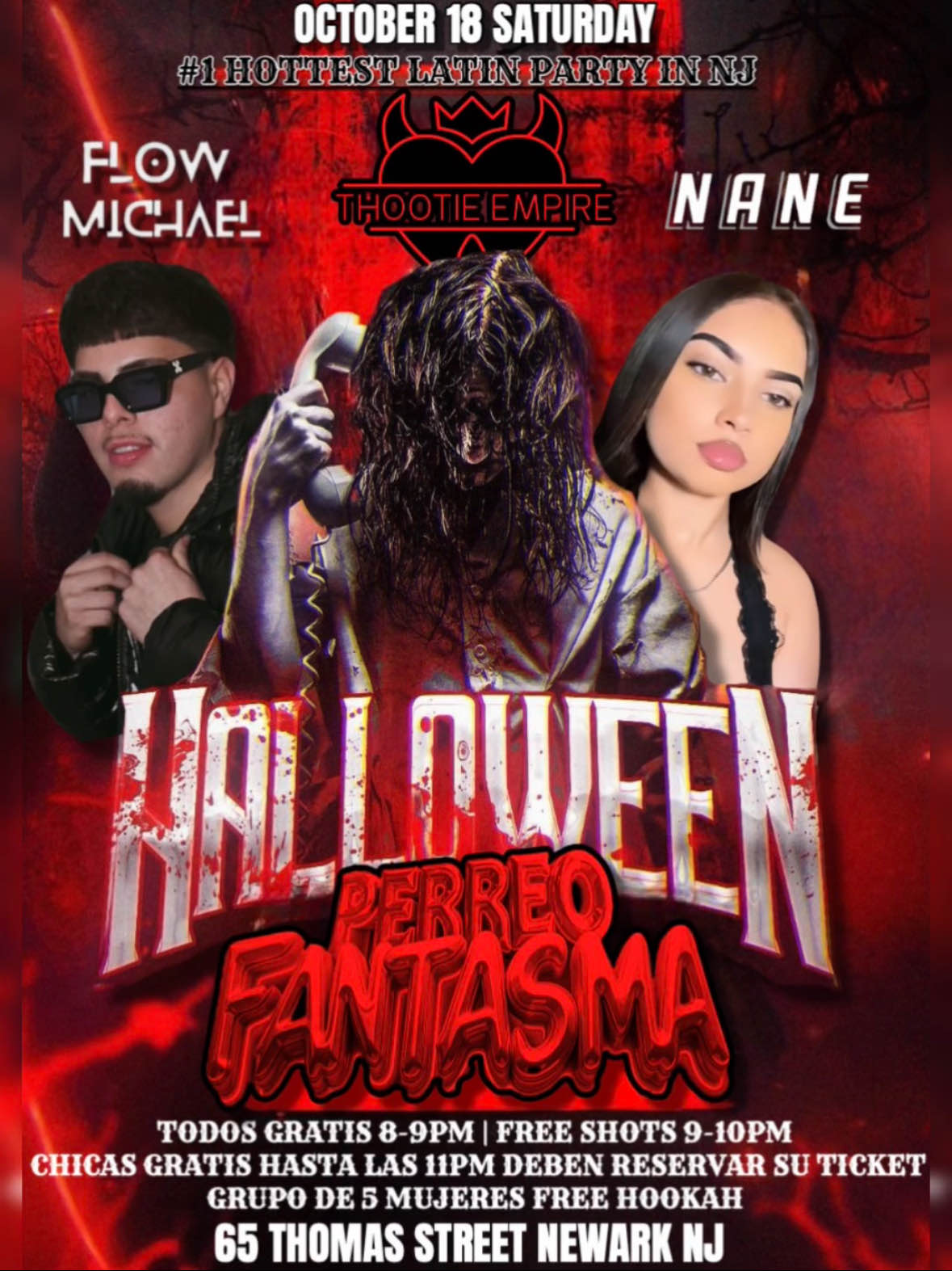 #1 hottest Latin party in nj Halloween ๐ป perreo fantasma donโt miss out everyone free till 9pm ๐ ladies free till 11pm must rsvp โญ๏ธ๐๏ธ donโt miss out on this movie full of surprises giving out free bottle for the best dancer ๐ ๐บ ๐พ free shots 9-10 donโt be late tickets online for the low donโt miss that opportunity if you want to pay less sh...