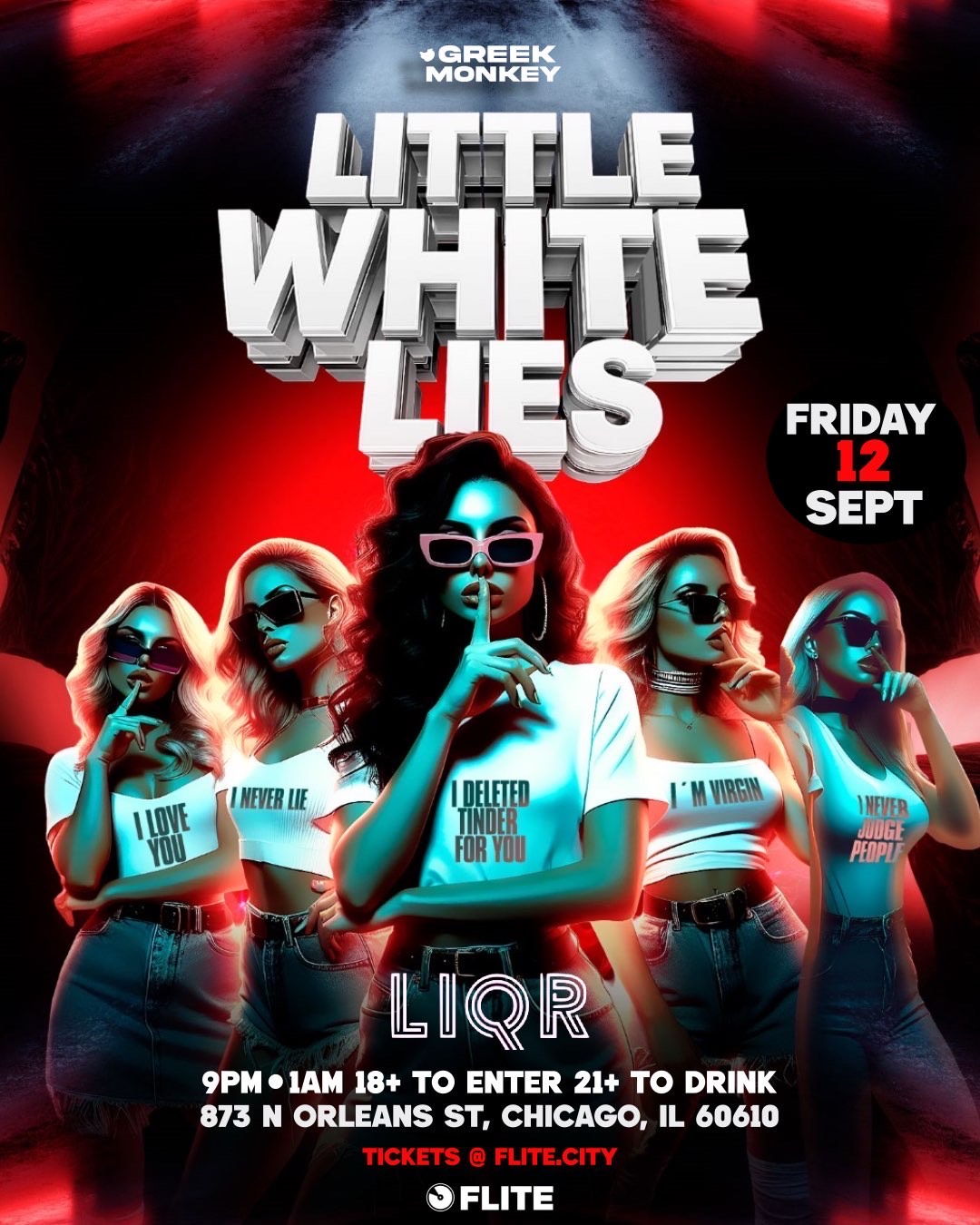 Join us for a night of fun, laughter, and maybe just a little fibbing at our Little White Lie Party @ LIQRBOX NIGHTCLUB ! DOWNTOWN CHICAGO IL, ID 18+ TO ENTER 21+ TO DRINK Come dressed in your best white attire and be ready to tell some harmless white lies. There will be raging , dancing, and of course, a contest for the best white lie. So...