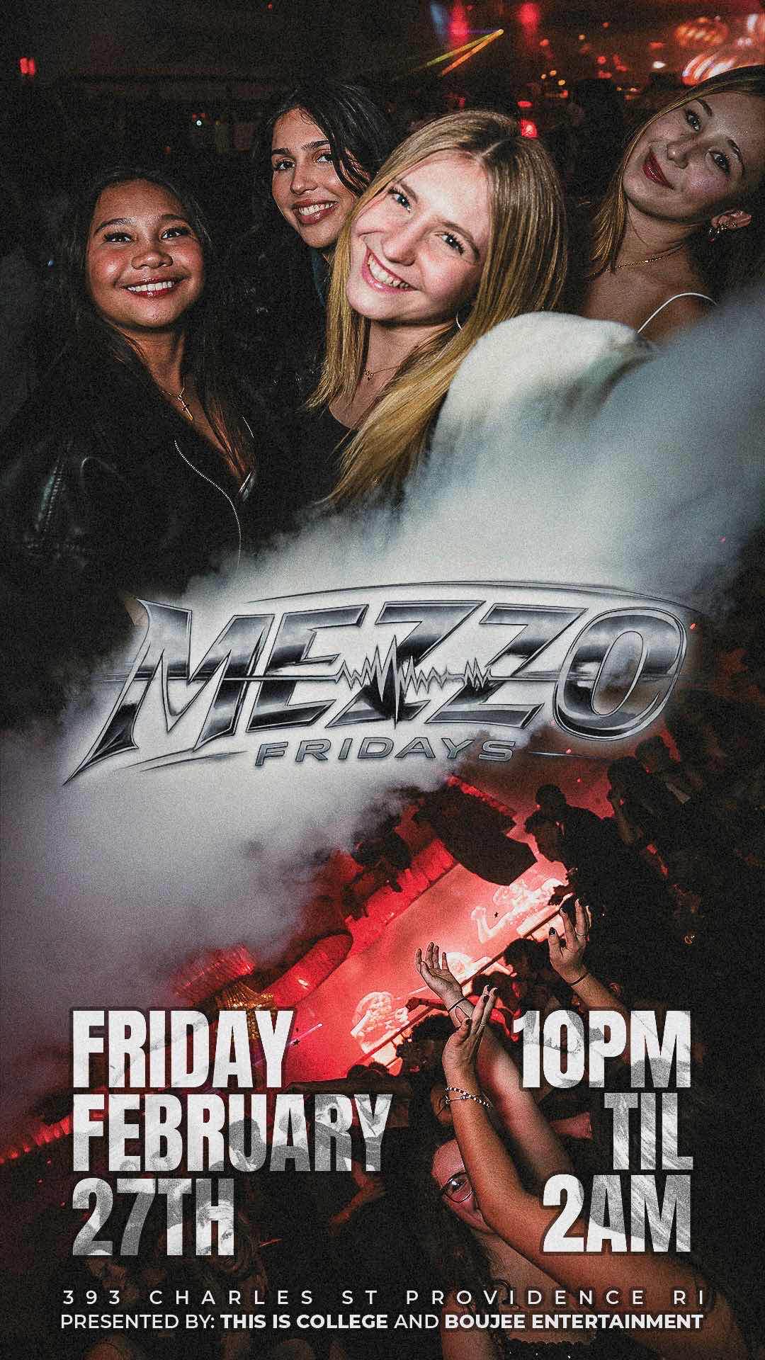 393 Charles St, Providence, RI 02904, USAMEZZO FRIDAYS 18+ Friday night at Mezzo. Music loud, room packed, no extras. Hosted by This Is College and Boujee Entertainment. 📍 393 Charles St, Providence, RI 📅 Friday, February 27 ⏰ 10PM–2AM 🔞 18+ | ID required NO REFUNDS ALL SALES FINAL NO EXCEPTIONS If you’re out Friday, this is where you go.