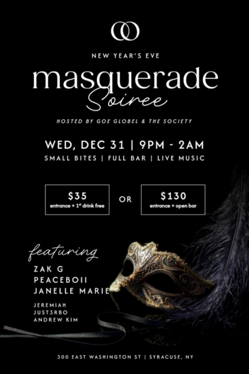 Step behind the mask and into a night of intrigue, elegance, and celebration as we bid farewell to the old and welcome the promise of a new year. Join us for an unforgettable New Year’s Eve Masquerade Soirée, where mystery meets glamour be...