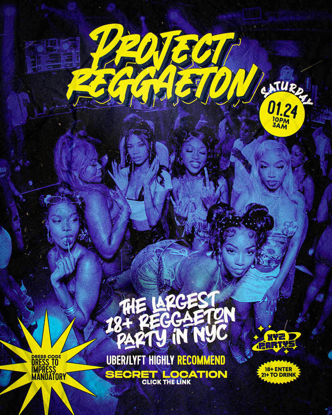 PROJECT REGGAETON π (18+) Secret warehouse w/ Pure perreo all night. π650 Sackett St Brooklyn, NY 11217 π This Saturday, Jan 24th β° 10PMβ3AM (500+ Capacity) Dress to Impress π (No exceptions) 18+ to enter | 21+ to drink πΈ Uber / Lyft strongly recommended π π NYCβs LARGEST 18+ Reggaeton Party π