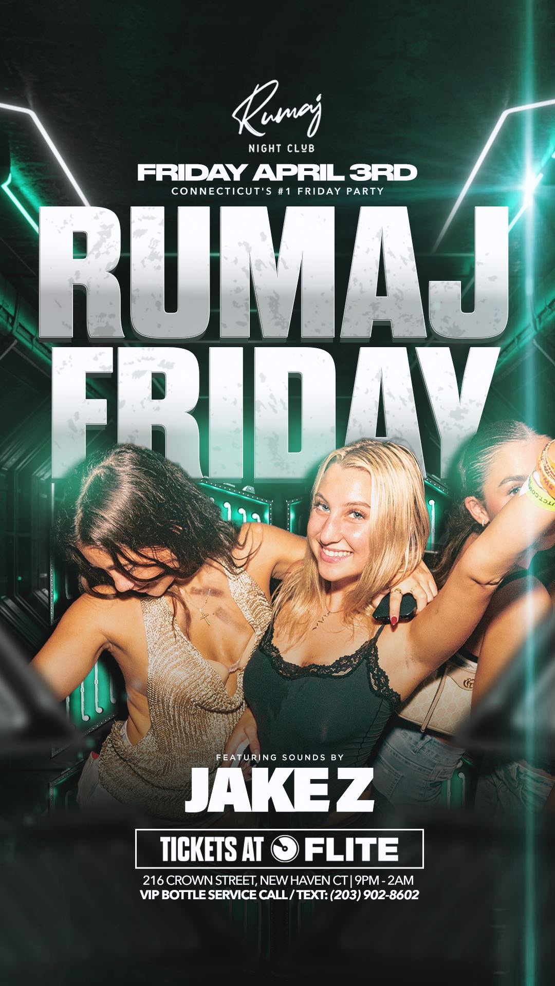 Rumaj Friday’s: Join us THIS FRIDAY at New Haven's Most Iconic Nightclub for a night filled with the best music, ambiance, and environment in CT What To Expect: 🍻 $3 Tea Shots, $4 Beers, $5 Mixed Drinks (9PM-10:15PM) 🎧 Sounds by Jake Z 🍾 VIP BOTTLE SERVICE AVAILABLE (DM: Rumaj.Nights) 👉 600+ Person Event 👉 21+ To Drink & More Lock in o...