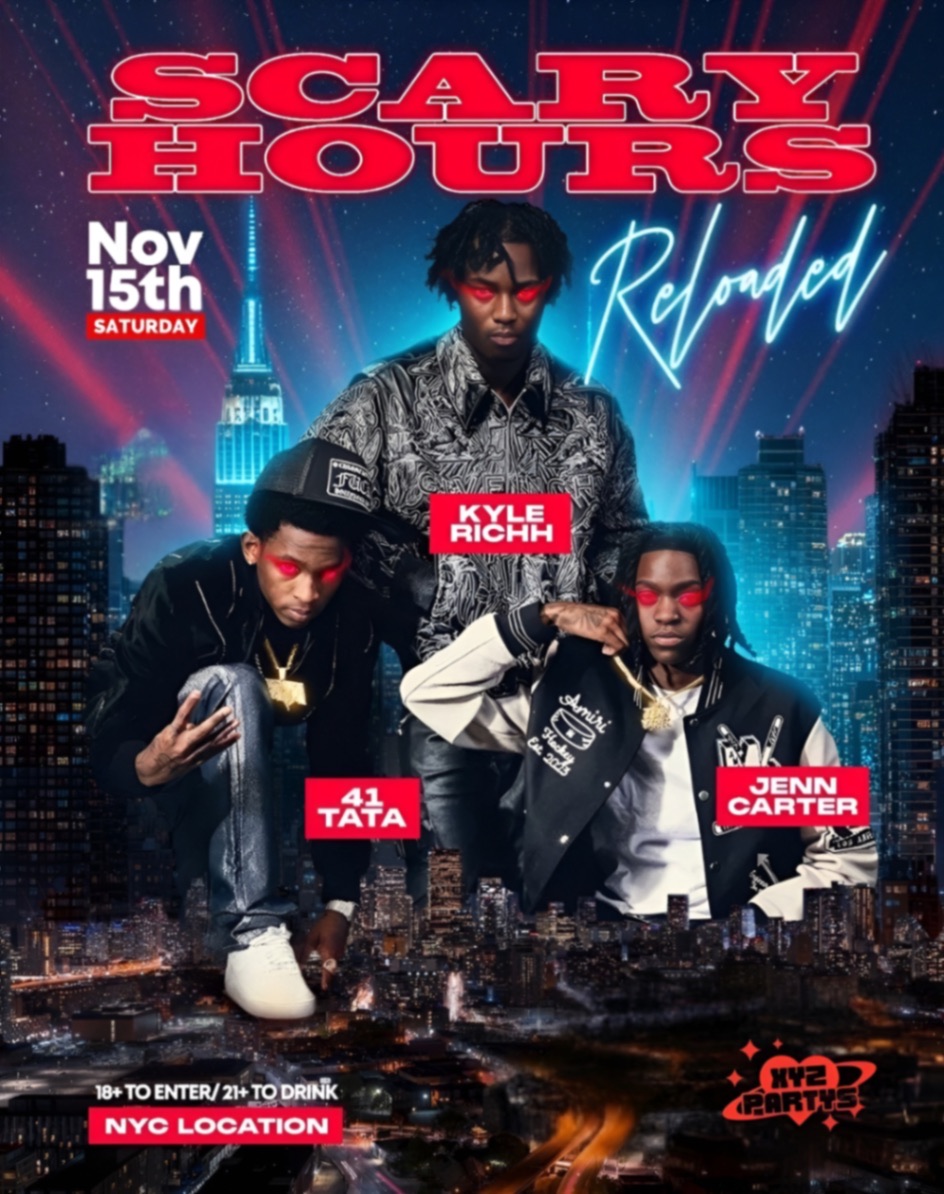 π¨ SCARY HOURS: RELOADED (18+) π¨ NYCβ¦ yβall asked for it π weβre bringing the madness BACK bigger, louder & wilder! π» KYLE RICHH | 41 TATA | JENN CARTER π This Saturday, Nov 15th β NYC LOCATION π 18+ TO ENTER | 21+ TO DRINK β¨(3000+) ποΈ Tickets moving SUPER FAST Link in bio / @xyz.partys π