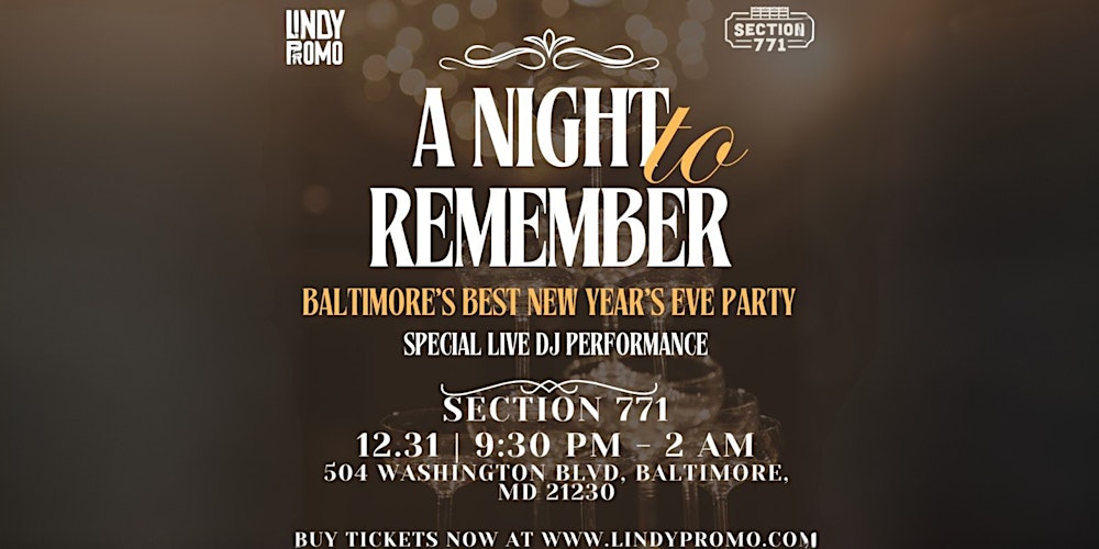 Get ready to ring in the New Year at Section 771 in Baltimore! Join us on December 31st for an unforgettable night filled with excitement, energy, and memorable moments a...