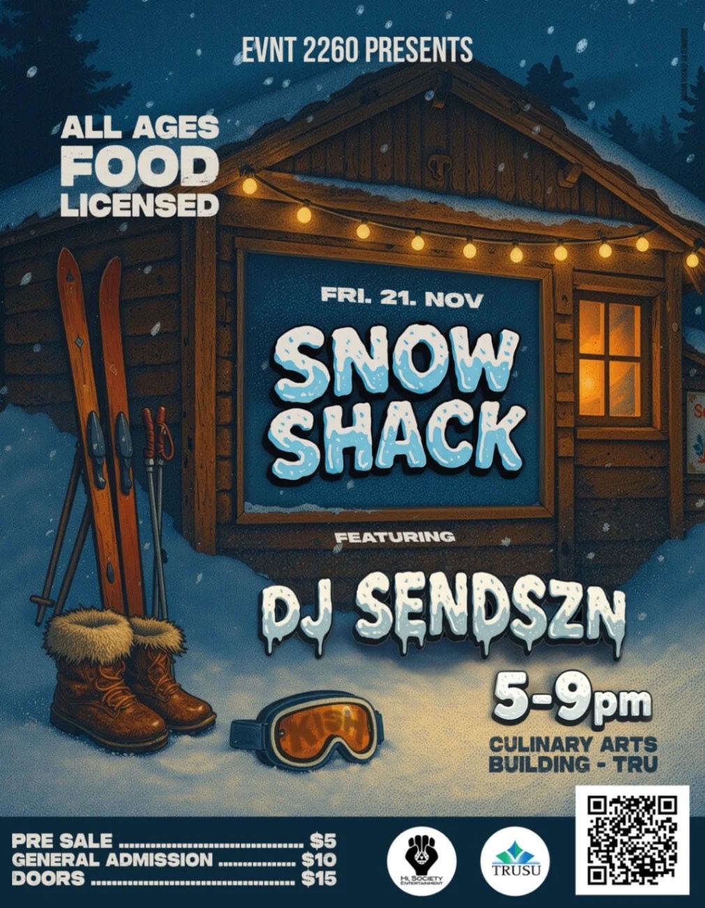 TRU’s biggest winter kick-off is here! ❄️ ⛷️ SNOW SHACK | Nov 21 | 5–9PM | Culinary Arts Building 🎟️ Hosted by EVNT 2260 🎧 Featuring DJ SendSzn Join us for an après-ski style party with food, drinks, music, and all the good vibes. Watch the annual Rail Riot outside, then head inside to warm up, hang out with friends, and catch a DJ set tha...