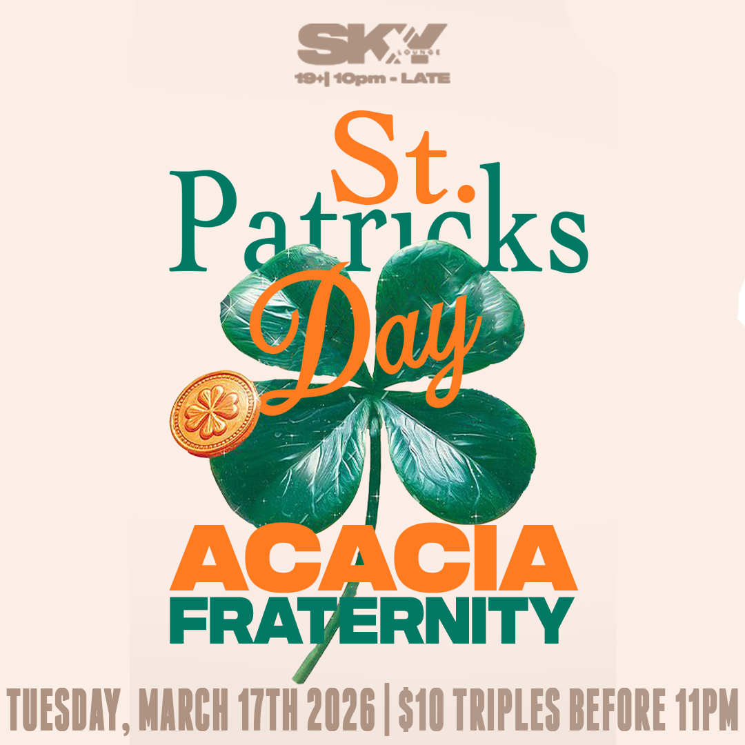 Join ACACIA and 500 students at Sky Lounge for the BIGGEST St Pats party in Ottawa.