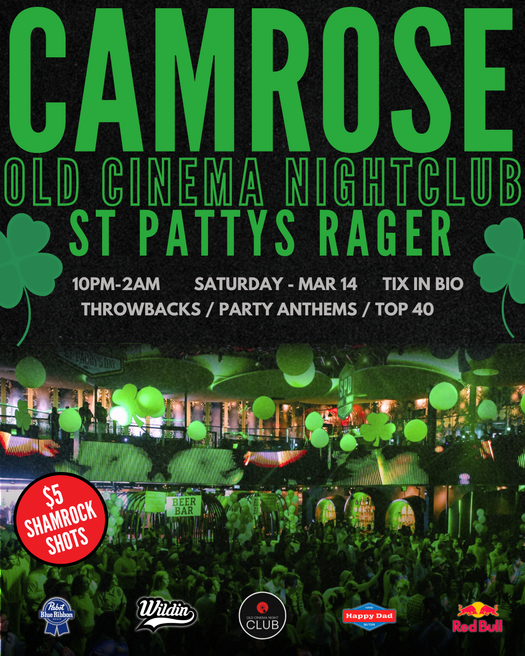 Saturday March 14th we are teaming up with OLD CINEMA NIGHTCLUB to bring you the ST.PATTYS party of your dreams. Time to find the pot of gold and come party with: