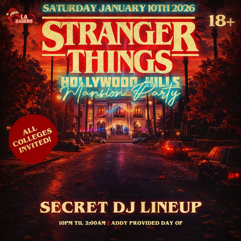 2451 Nichols Canyon Rd, Los Angeles, CA 90046, USA🛸 Stranger Things THEMED MANSION PARTY 🛸 Back to School Kickoff — Done the Right Way 📍 Hollywood Hills Mansion 🏡 Massive Indoor + Outdoor Setup 🎶 Production • Special Guests • Live DJ 🍻 Beer Pong 🧪 Special Stranger-Things–Inspired Drinks 🔒 Strict Security Enforced 🔞 18+ Only 📍 Address released day-of at 5PM This isn’t just a party — it...