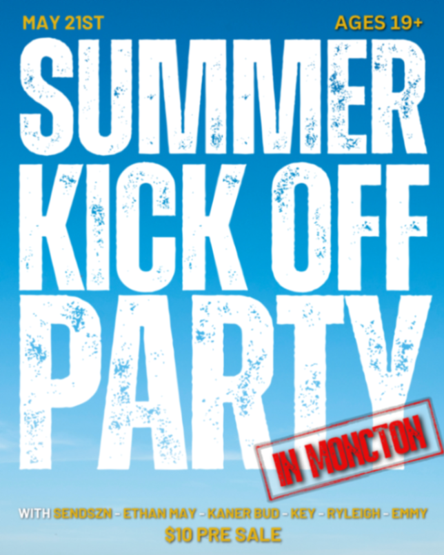 Get ready for the Biggest summer kick off party in Moncton with SENDSZN, ETHAN MAY & KANER BUD🔥