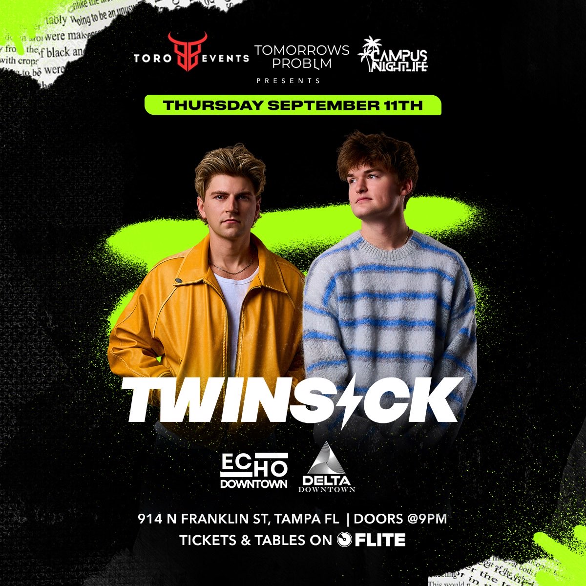 F*ck WEEK TAKEOVER @ DELTA & ECHO NIGHT CLUB Ft. TWINSICK Live! with support from local DJS APART OF GREEK LIFE 📍 Delta & Echo Nightclub – Tampa ⏰ Doors Open at 9PM | 18+ Get ready, Tampa — Rush Week just got an upgrade. We're kicking off the school year with the ultimate party of the semester! 🔥 Headlining the night is none other than Twinsic...