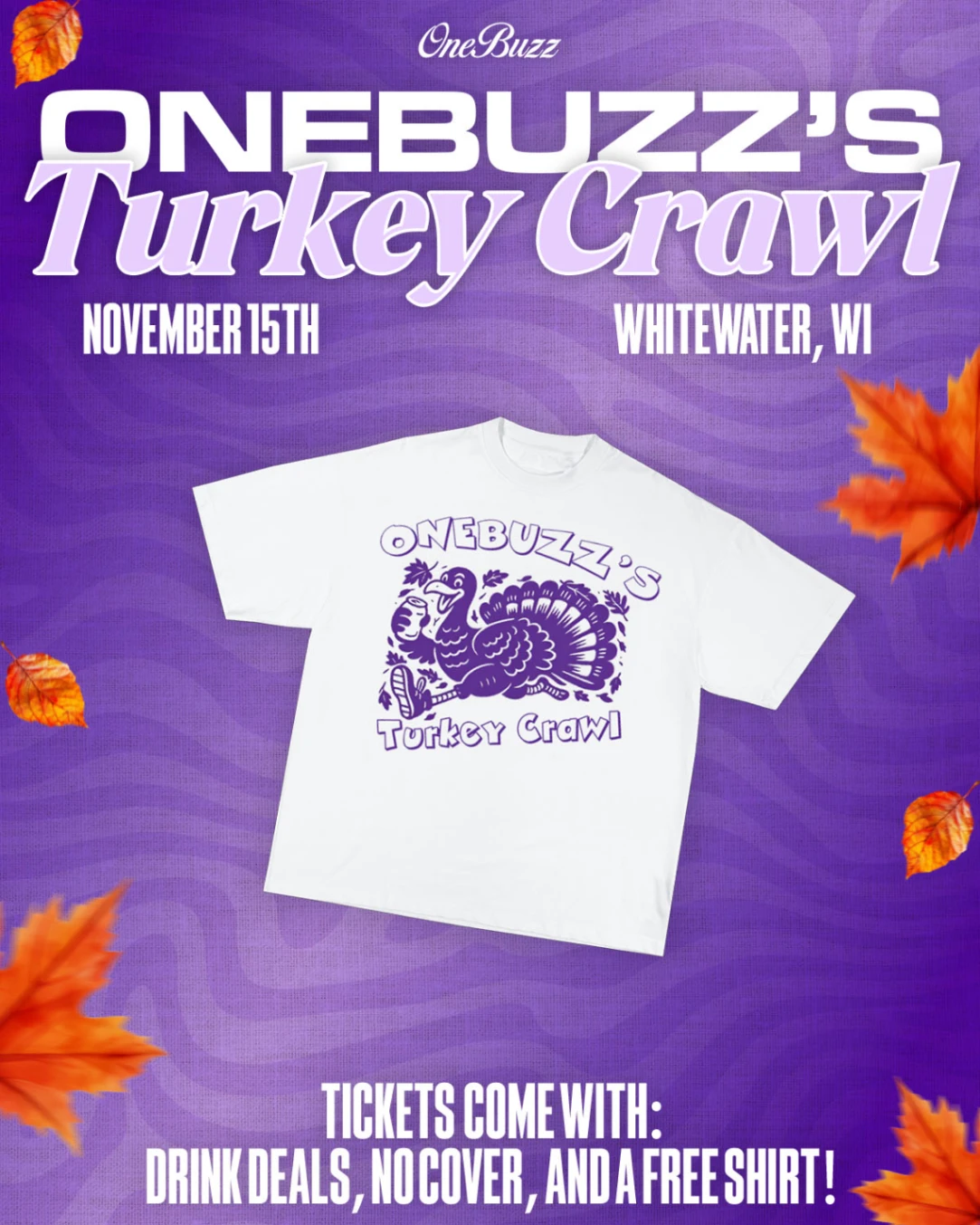 Whitewater’s BIGGEST bar crawl is back - and this time it’s going to be a Turkey Day takeover. Powered by OneBuzz, the crew that throws the wildest college parties in the nation! 🦃🍻