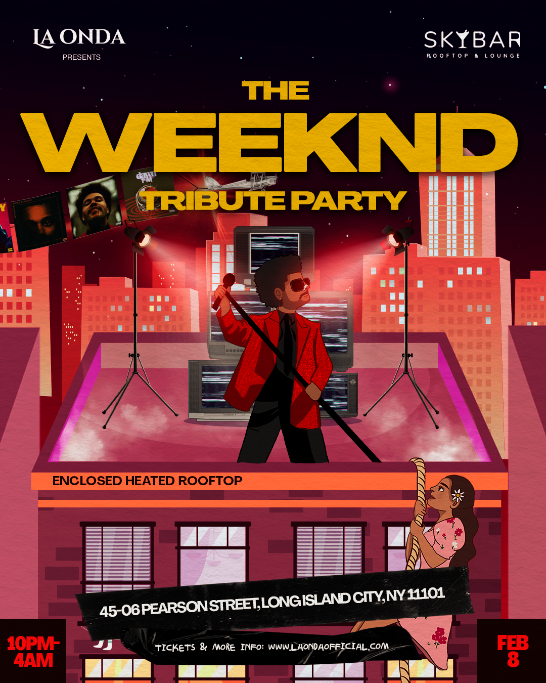 The weekend tribute listening party , playing all pop , r&b , reggaeton & much more hits all night long ππ» Special cocktails drinks , skyline views & live music @ Skybar rooftop