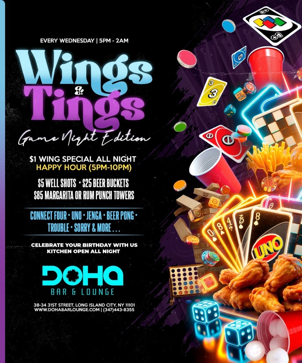 Join us every Wednesday from 5 PM to 2 AM for an unbeatable night of games, wings, drinks, and unforgettable vibes!